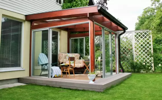 Современное и стильное - это безрамное остекление веранды и террасы;